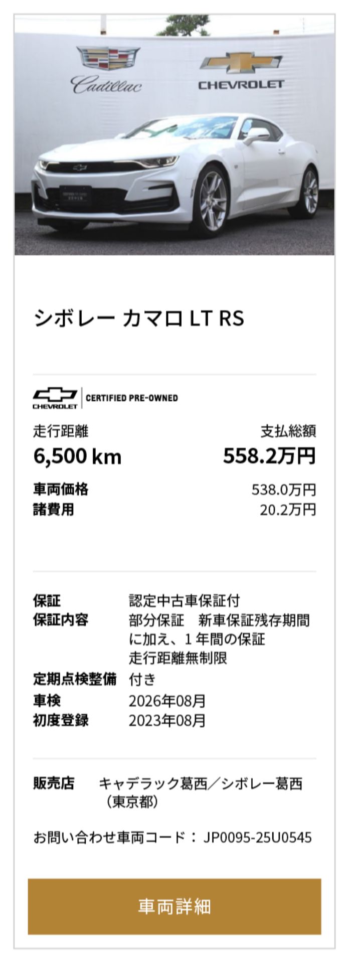 シボレー カマロ 掲載台数2台(10/1時点)