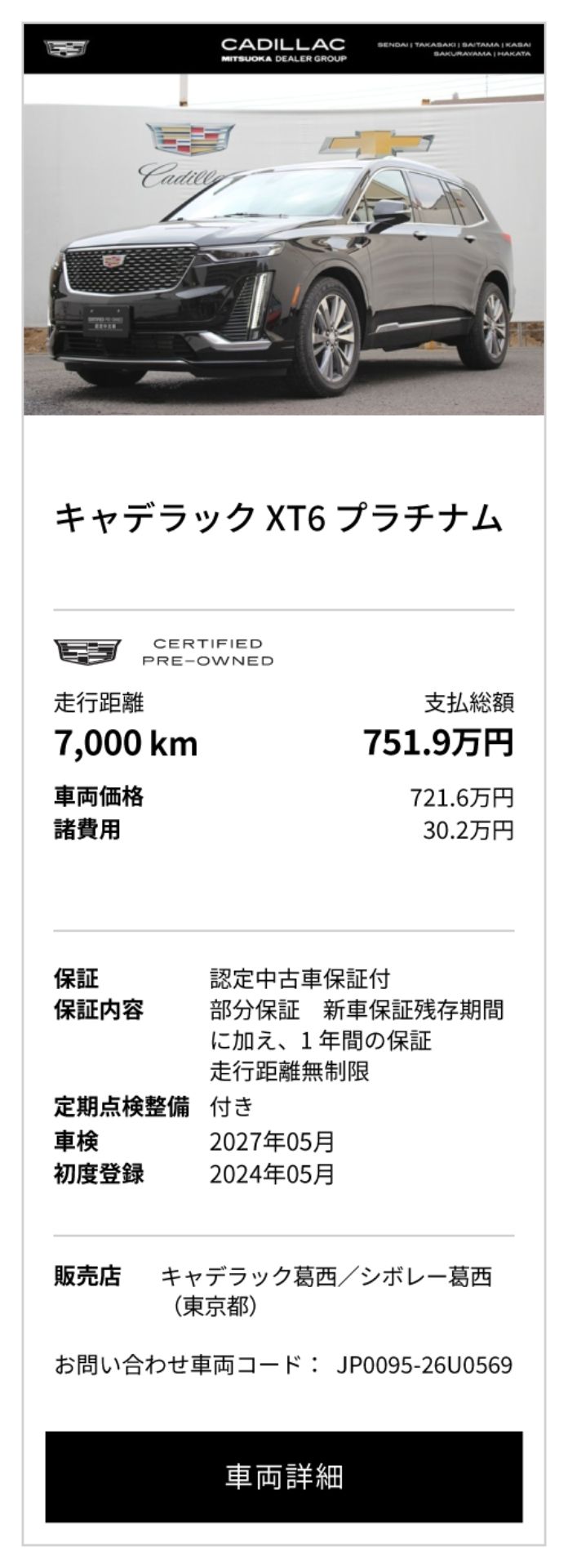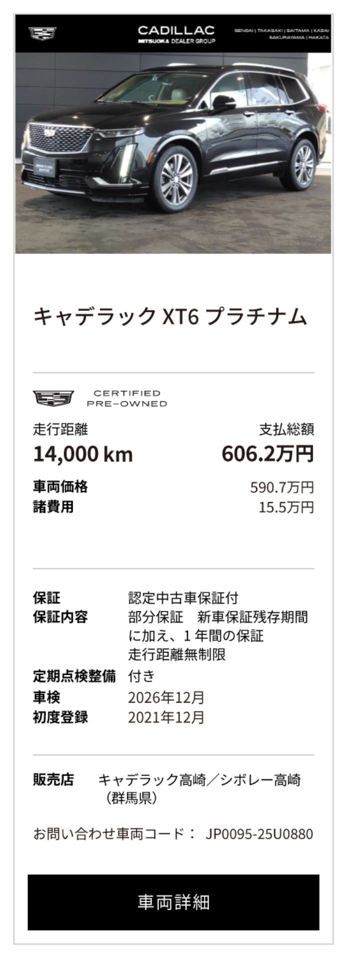 キャデラック XT6 掲載台数 4台(4/1時点)