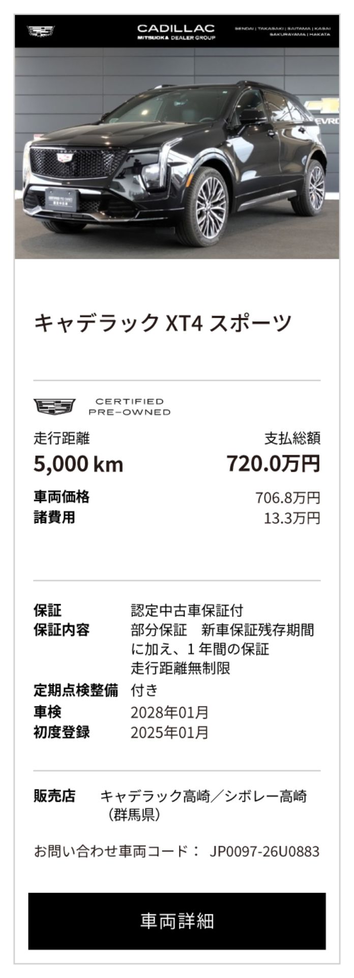 キャデラック XT4 掲載台数 5台(4/1時点)