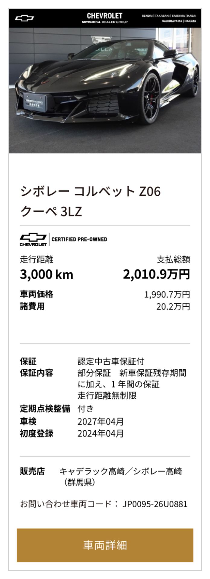 シボレー コルベット Z06 掲載台数1台 (4/1時点)