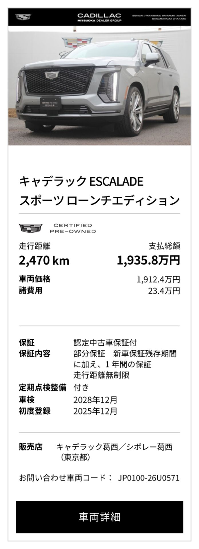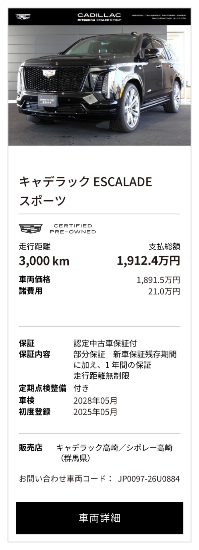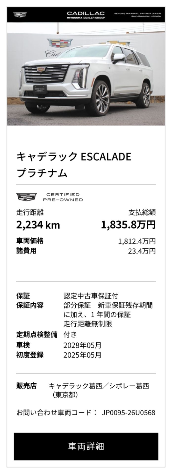 ※本ページはキャデラック高崎/シボレー高崎、キャデラックさいたま南/シボレーさいたま南、キャデラック葛西/シボレー葛西の3店舗合同企画となります。