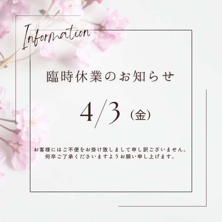 *翌日 4月 4日 (土) 10:00より通常営業いたします。